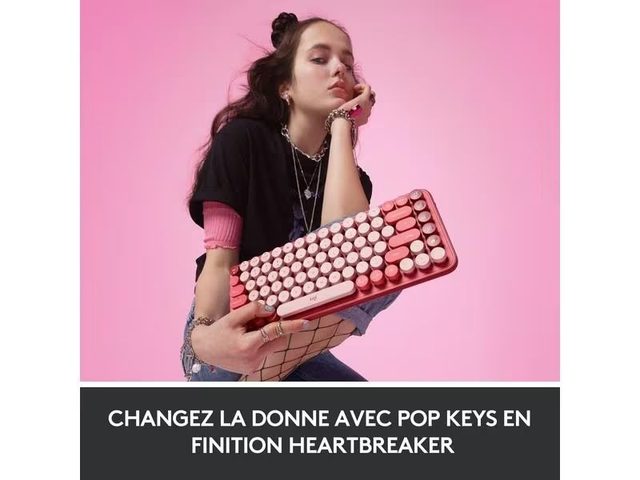 Le clavier POP-Keys de Logitech attire immédiatement l'attention de tout le monde avec son design particulier et ses touches interchangeables en forme d'emoji. Les touches mécaniques à ressort procurent une agréable sensation de frappe rétro. Le clavier se connecte à trois appareils différents via Bluetooth ou un récepteur USB et se contrôle facilement via le logiciel Logitech Flow.