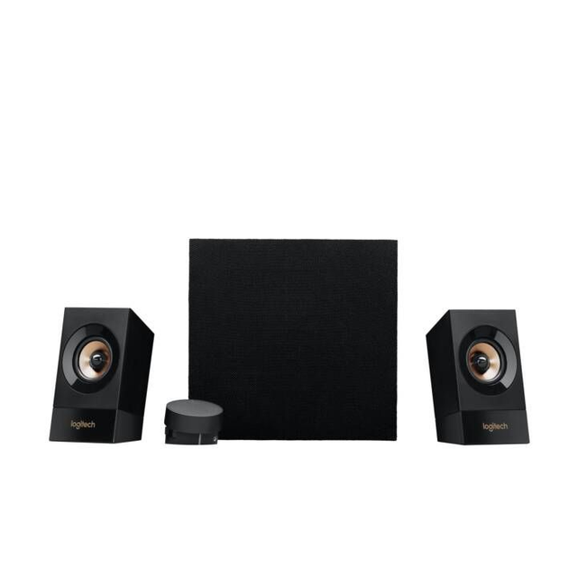 Avec le Logitech Z533, vous obtenez un système de haut-parleurs multimédia équipé de deux haut-parleurs Phase-Plug de 2,5 pouces, chacun fournissant 60 W de puissance RMS. Le son est très convaincant grâce à cette puissance de crête de 120 W et est complété par le subwoofer frontal, qui fournit les graves correspondants. Pour la connexion d'appareils, le système de haut-parleurs est équipé de plusieurs ports, que vous pouvez utiliser simultanément jusqu'à trois PC, smartphones, tablettes, téléviseurs ou consoles.